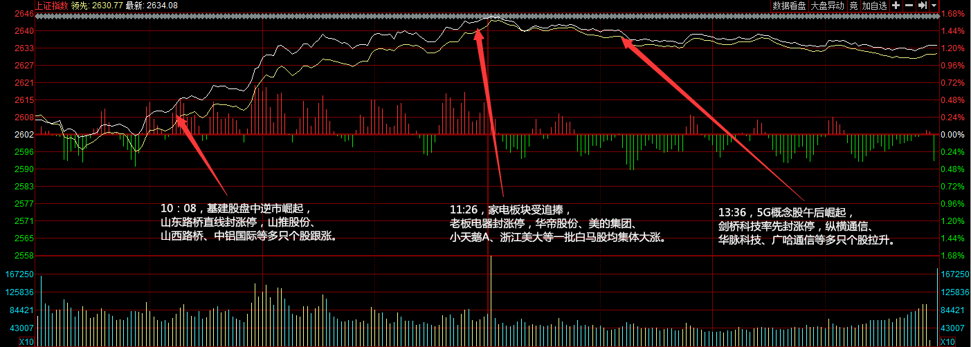 今天漲停家數(shù)較上一交易日有所增加,兩市31家漲停,跌停3家。成交量方面,滬市成交1324億元,深市成交1725億元,兩市總成交額約為3049元,較上一交易日放量822億元。盤(pán)面上,水泥、高鐵、家電等板塊漲幅居前,高送轉(zhuǎn)、共享單車(chē)、養(yǎng)殖業(yè)等板塊跌幅居前。
