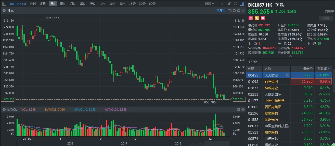 這個(gè)年關(guān)對醫(yī)藥股而言似乎異常難熬,因?yàn)椤?+7”大屠殺帶來的“惡果”還未修正,卻又遭到輔助用藥的“坑殺”。雙重“叩擊”之下,醫(yī)藥股以“跑路之速”繼續(xù)坐穩(wěn)跌幅榜。智通財(cái)經(jīng)APP觀察到,截止目前7個(gè)交易日,港股醫(yī)藥板塊已經(jīng)下挫了近15%,涉及金額多達(dá)200億港元。