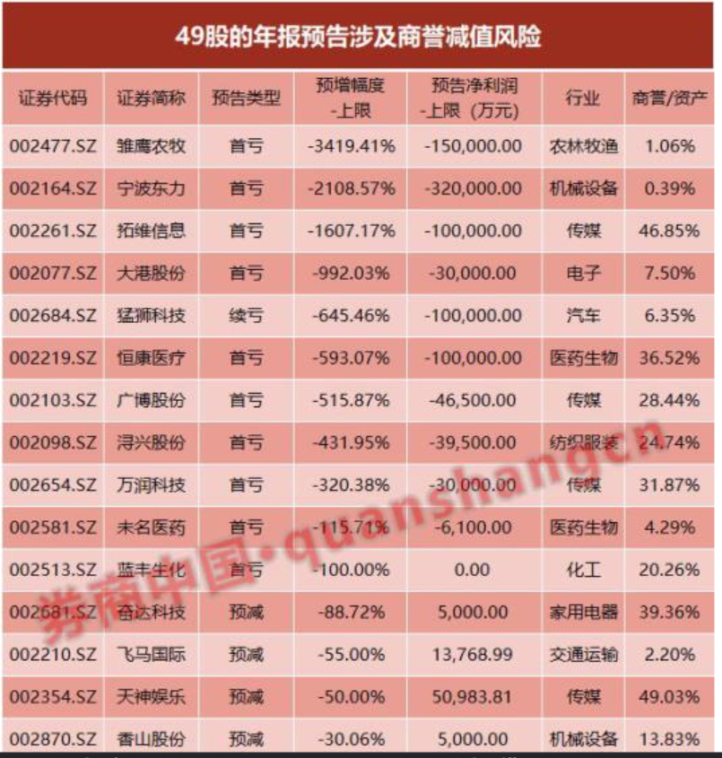 操作建議:本周外圍股市圣誕休市,A股超跌、政策利好顯現(xiàn)下有望企穩(wěn)、回升;50白馬藍(lán)籌持續(xù)調(diào)整顯示中線資金籌碼松動(dòng),市場(chǎng)結(jié)構(gòu)性價(jià)值中樞再下臺(tái)階,近期注意回避業(yè)績(jī)風(fēng)險(xiǎn),尤其是商譽(yù)減值對(duì)公司年報(bào)影響。創(chuàng)歷史新高的1.4萬億A股商譽(yù),已切實(shí)地影響上市公司的年度業(yè)績(jī);在已發(fā)布的年報(bào)業(yè)績(jī)預(yù)告中國(guó),有49家公司認(rèn)為存在商譽(yù)減值風(fēng)險(xiǎn),將在2018年年底進(jìn)行減值測(cè)試,一旦確認(rèn)減值,將導(dǎo)致2018年業(yè)績(jī)下滑、轉(zhuǎn)虧或擴(kuò)大虧損,商譽(yù)減值成為一些公司業(yè)績(jī)不確定性的一大來源。