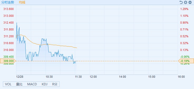 智通財經APP獲悉,騰訊(00700)今日除凈,早盤于310元附近徘徊,暫高低位312.8元及308.6元。截至11時33分,跌0.19%,報價309港元,成交額11.53億。