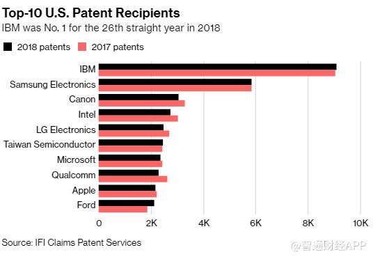根據(jù)Fairview Research旗下IFI Claims Patent Services的分析,僅IBM一家公司就獲得了9100項(xiàng)專利,保住了其第一名的位置,并將IBM的連勝時間延長到了26年。