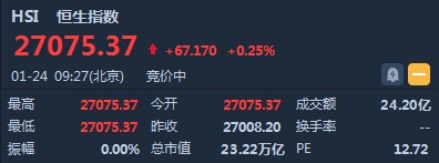 智通財(cái)經(jīng)APP獲悉,恒生指數(shù)開(kāi)盤(pán)高開(kāi)0.25%,報(bào)27075.37點(diǎn)。國(guó)企指數(shù)漲0.31%,報(bào)10663.49點(diǎn)。紅籌指數(shù)漲0.64%,報(bào)4328.62點(diǎn)。大市盤(pán)前成交24.21億港元。隔夜美股震蕩收高,港股ADR全日偏軟。市場(chǎng)對(duì)月底中美談判有所憧憬。