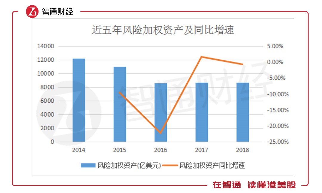 風(fēng)險加權(quán)資產(chǎn)方面表現(xiàn)與總資產(chǎn)類似,于2017年大幅增長,至去年有所回落。據(jù)智通財經(jīng)APP了解,2018年,匯豐控股風(fēng)險加權(quán)資產(chǎn)達8653.18億美元,同比下降0.69%。