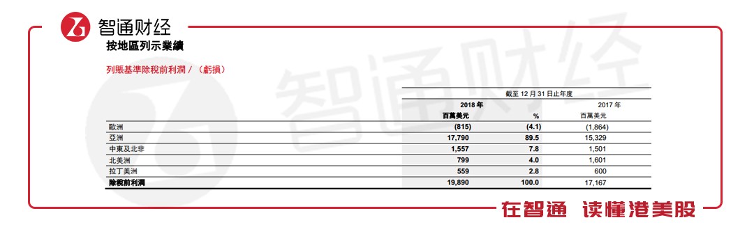從地區(qū)來看,以亞洲地區(qū)為重心的策略持續(xù)發(fā)力,2018年亞洲市場依舊為盈利貢獻最大的地區(qū),為集團帶來89.5%的列賬基準(zhǔn)除稅前利潤,較去年增長0.2個百分點。歐洲市場虧損也較大幅度縮減。然而,在匯控去年于北美地區(qū)突飛猛進后,2018年又有所回落。