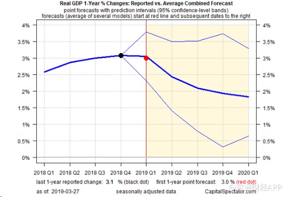 每季度更新的GDP同比數(shù)據(jù)趨勢也表明,美國經(jīng)濟(jì)出現(xiàn)下滑?!顿Y本觀察家》通過一系列綜合預(yù)測得出的平均預(yù)測值顯示,今年第一季度的同比增幅將從去年第四季度的3.1%小幅降至3.0%,并在未來幾個(gè)季度繼續(xù)走軟。如果預(yù)測無誤,這一同比增幅將出現(xiàn)自2016年第二季度以來的首次下降。