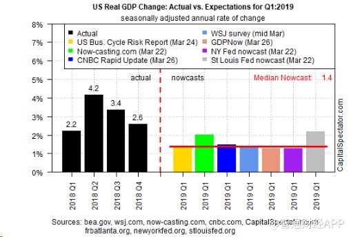 周四最新出爐數(shù)據(jù)顯示,美國去年第四季度GDP放緩程度超預(yù)期,終值年化季環(huán)比增速下修至2.2%。據(jù)預(yù)估數(shù)據(jù)顯示,2019年第一季度美國GDP數(shù)據(jù)可能會(huì)繼續(xù)下滑,即或?qū)⑦B續(xù)三個(gè)季度下跌。