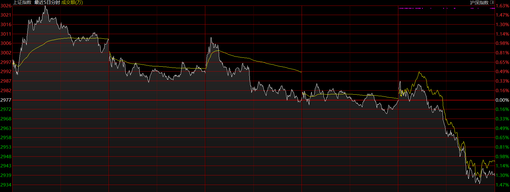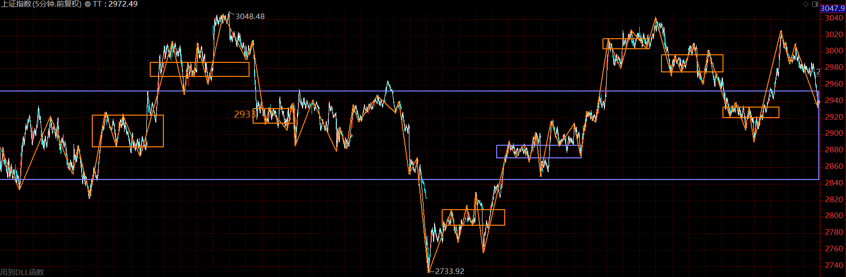結(jié)構(gòu)上看,上證指數(shù)已跌回了大中樞內(nèi)部,市場(chǎng)情況不樂(lè)觀,大概率已經(jīng)確認(rèn)上周一的高點(diǎn)為第二類(lèi)賣(mài)點(diǎn)。那么這里應(yīng)該轉(zhuǎn)向防守為主,反彈中應(yīng)適度降低倉(cāng)位,觀望等待。關(guān)注壓力位2970點(diǎn)附近,可據(jù)此高拋,靜待市場(chǎng)回落后再行布局。