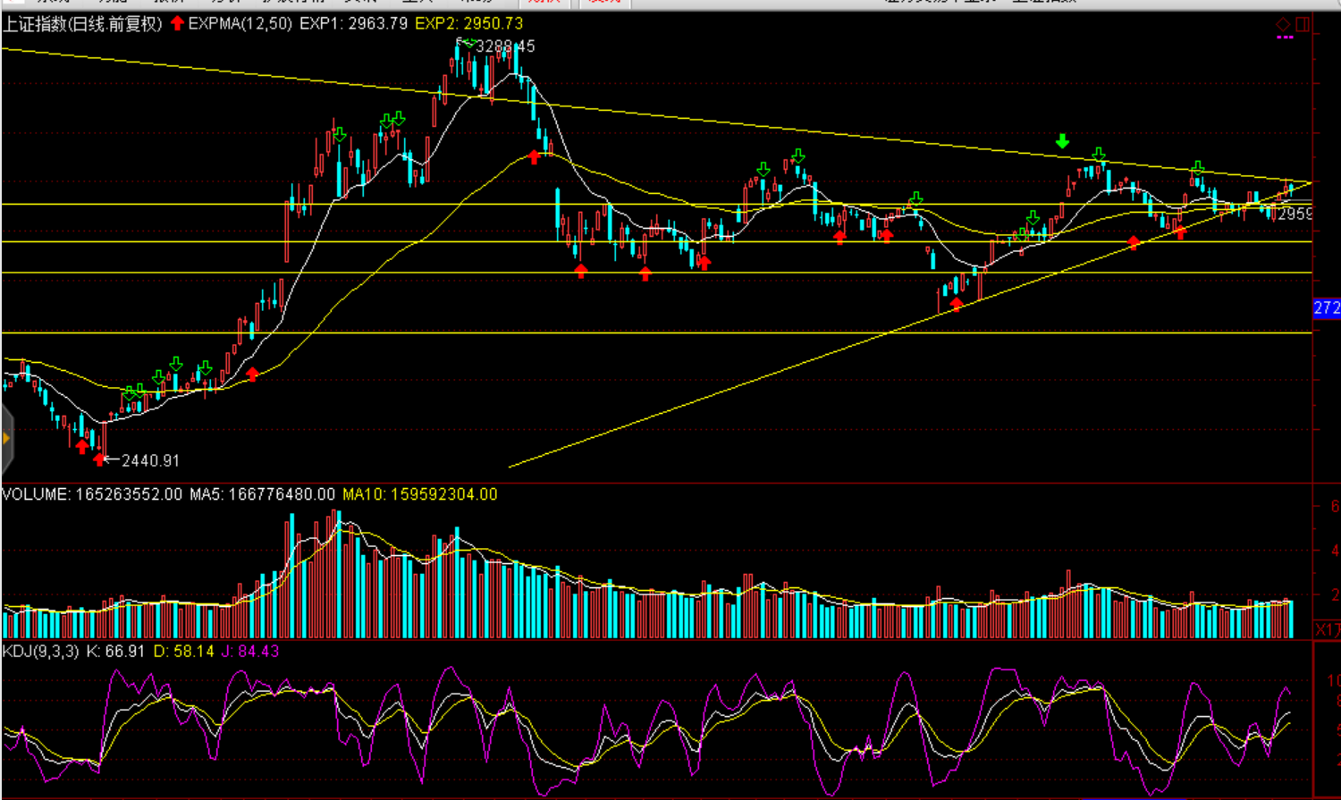 技術(shù)面:自9月16日以來滬綜指形成的收斂三角形面臨方向選擇,今日是第34個交易變盤窗口,一旦向上,則形成趨勢性反彈概率較大。