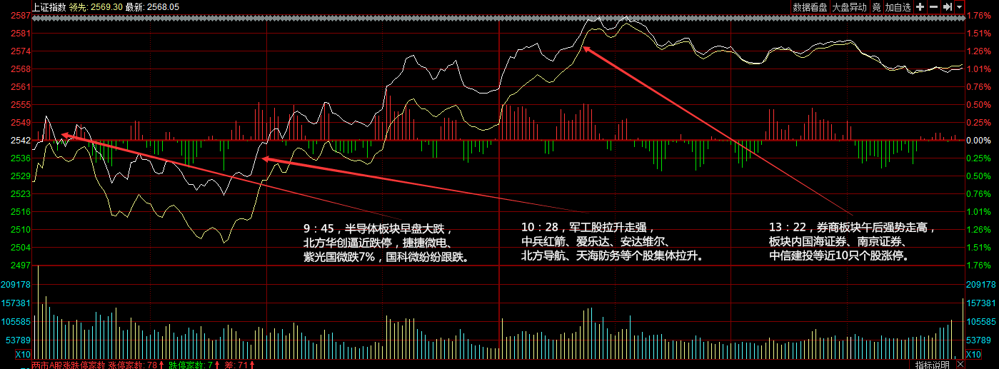 今天漲停家數(shù)較上一交易日有所增加,兩市78家漲停,兩市總成交額約為3110元,較上一交易日放量556億元。盤面上,券商、高送轉(zhuǎn)、保險(xiǎn)等板塊漲幅居前,白酒、黃金等板塊跌幅居前。