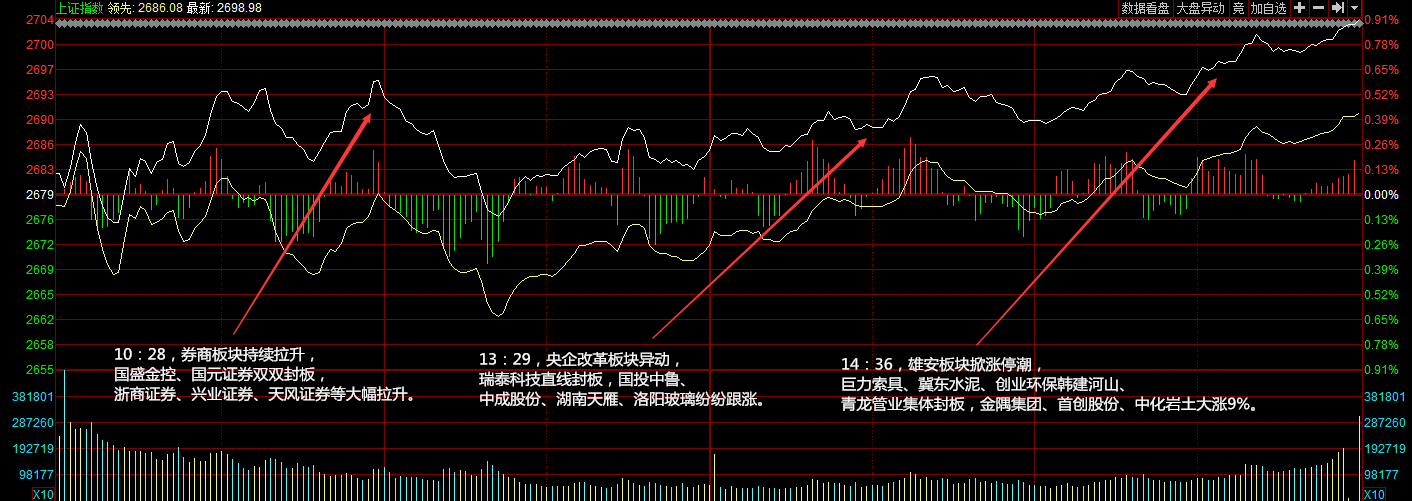 兩市開(kāi)盤漲跌不一,創(chuàng)業(yè)板明顯弱于主板,ST板塊偃旗息鼓,券商、地產(chǎn)等板塊走強(qiáng)帶動(dòng)滬指上行。午后指數(shù)震蕩走高,雄安新區(qū)尾盤掀起漲停潮,滬指連漲三日重返2700點(diǎn)。