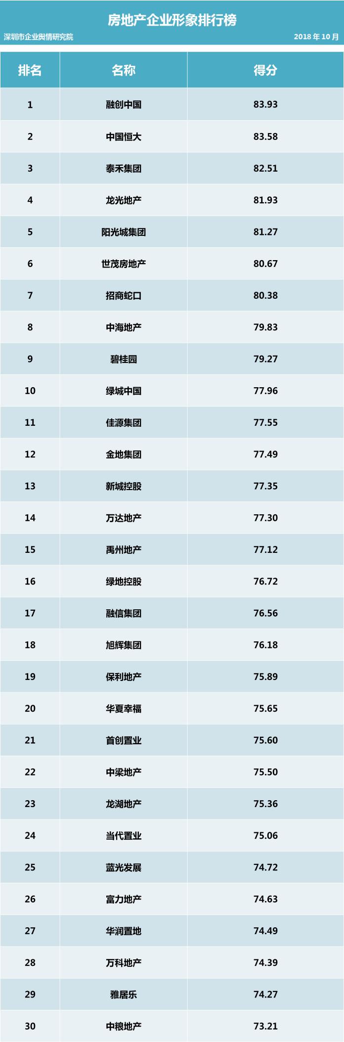 本榜單從規(guī)模實力、輿論曝光度、主動推廣力度、投資者關系和負面影響等五個維度,對2018年10月1日至10月31日這一時段內房地產行業(yè)各企業(yè)公眾形象進行綜合評估并排名,旨在對房地產行業(yè)各企業(yè)開展品牌形象塑造、宣傳推廣策略、公共關系維護、品牌影響力等方面的綜合評價,既幫助相關企業(yè)找準合適的品牌定位、發(fā)展方向,也為消費者和投資者提供科學、公正、獨立的消費和投資決策參考。