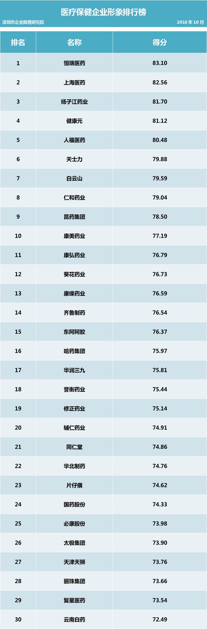 二、醫(yī)療保健行業(yè)企業(yè)公眾形象排行榜: