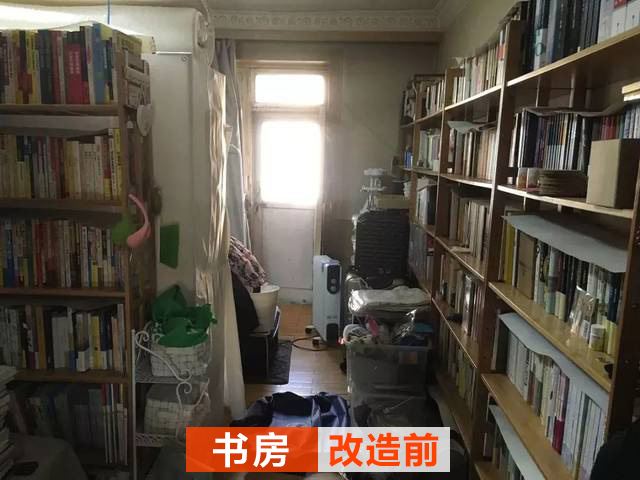 改造前的書(shū)房,書(shū)架不夠用,而且整個(gè)空間很昏暗。