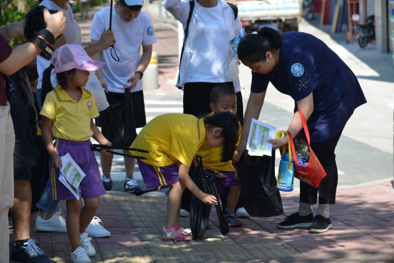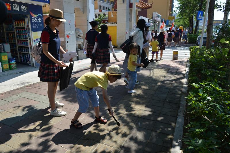 上午9點(diǎn)多,慈善小天使和志愿者們,從橫崗華明星幼兒園開(kāi)始,沿著華西村和志健廣場(chǎng)等橫崗片區(qū),一路清撿道路垃圾和與路人合影宣導(dǎo),向過(guò)往市民分發(fā)“垃圾不落地”資料,宣傳環(huán)保知識(shí)。特別支持的市民,小天使們派發(fā)了棒棒糖這一他們最好的感謝禮物。
