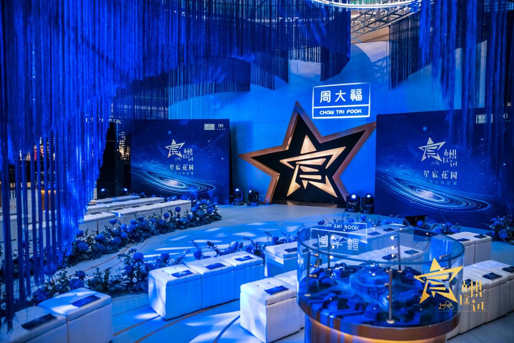 隨著現(xiàn)代都市生活節(jié)奏的加快,自由、輕快的自然主義,成為了人們心中放松與回歸的一片凈土。此次周大福以“宸·無懼遙遠”為主題,采用沉浸式多媒體方式,將發(fā)布會變成了一場聯(lián)結(jié)夢幻與現(xiàn)實的藝術(shù)展。在現(xiàn)場營造的“星宸花園”中,體驗區(qū)、展品陳列區(qū)、觀眾區(qū),每個區(qū)域都銜接自然,勾勒出如星河般的流暢動線。觀眾游走其間,猶如在星空漫步一般。