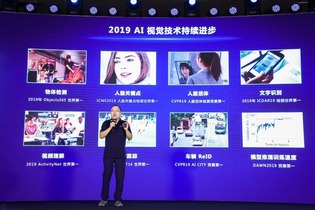 隨后,丁二銳基于更好效果的算法創(chuàng)新和更高性能的模型壓縮兩個方面,詳細(xì)介紹了百度人臉識別基礎(chǔ)技術(shù)的領(lǐng)先性,并從交互升級和軟硬結(jié)合兩方面講述了人臉識別的應(yīng)用趨勢。據(jù)丁二銳介紹,2019年百度大腦基礎(chǔ)AI視覺技術(shù)取得了很好的成績,在CVPR和ICCV等視覺頂會及比賽上,百度視覺技術(shù)團隊取得了數(shù)十項冠軍,其中在人臉方向,關(guān)鍵點、活體、檢測,識別就有四項冠軍。