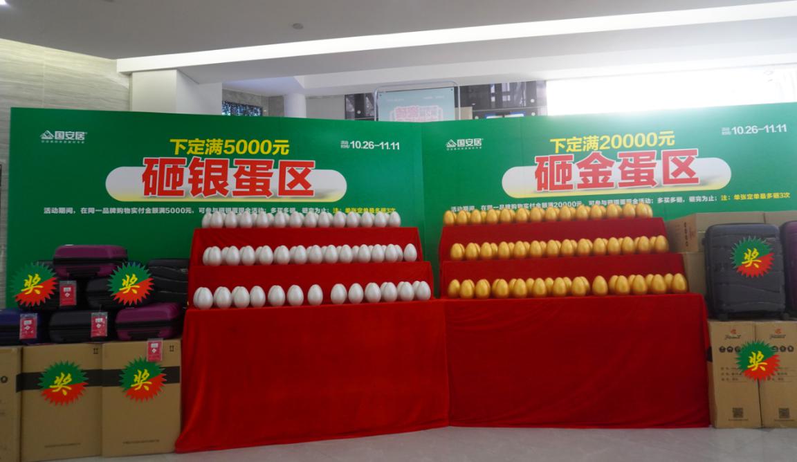 瘋搶五,瘋狂大抽獎,豪華家電抱回家:10月26日-11月10日,在國安居裝飾或商場任一品牌內,單筆實付滿2000元可獲得1張抽獎券、滿4000元可獲得2張,每單最多10張。
