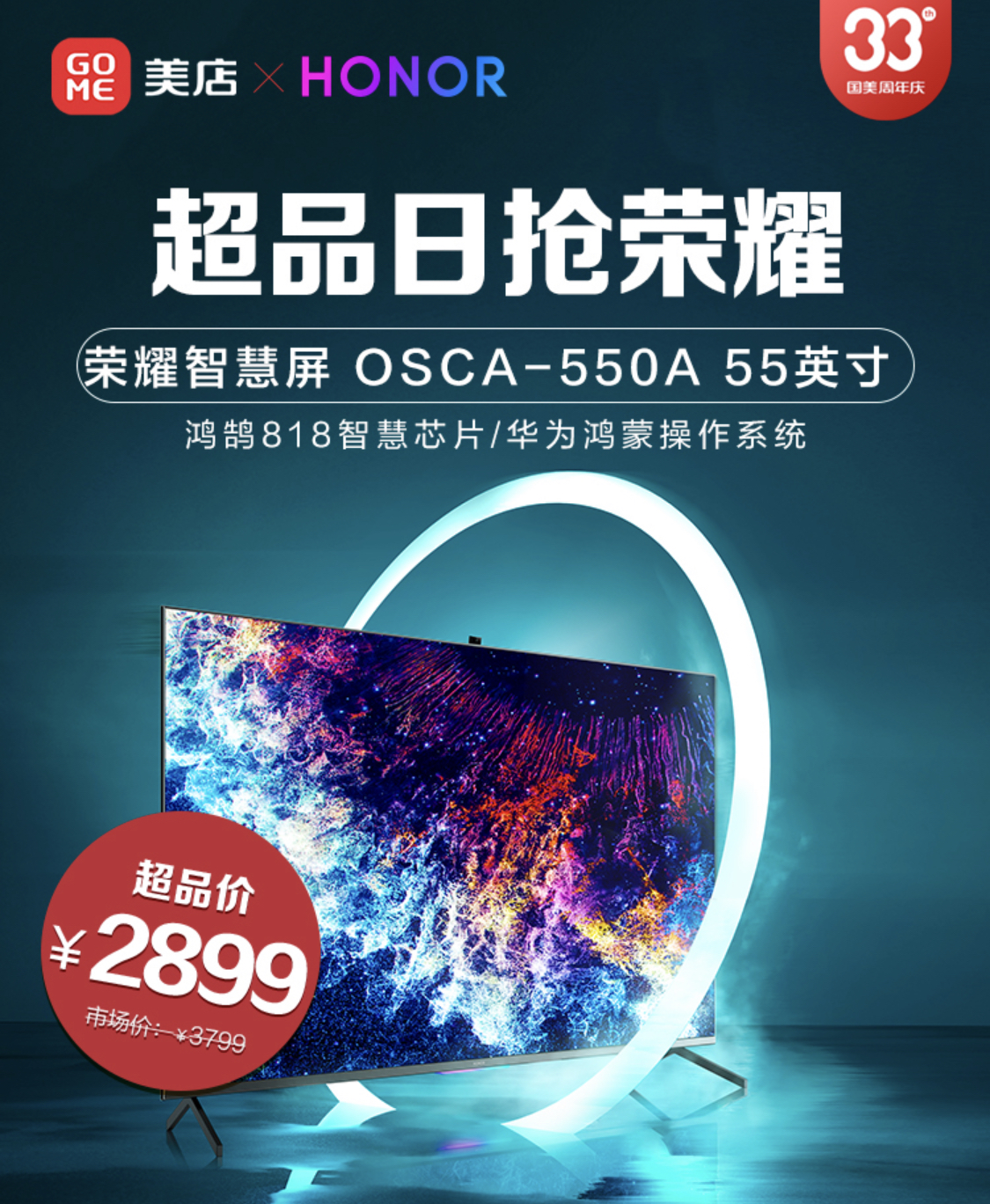 除榮耀手機(jī)外,榮耀今年全新推出的榮耀55英寸智慧屏在本次超級(jí)品牌日期間直降900元,僅售2899,成為歷史新低價(jià)?;顒?dòng)截止至12月15日,買榮耀產(chǎn)品就趁現(xiàn)在。