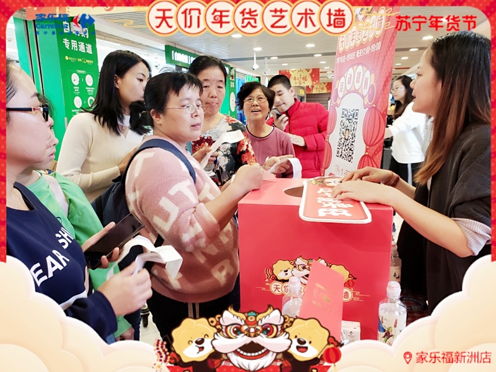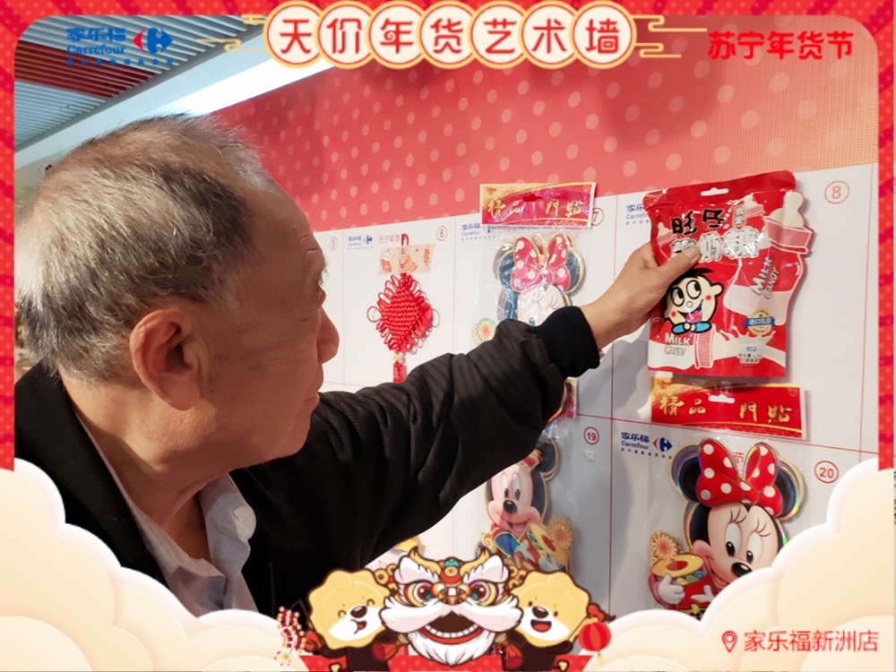 天價(jià)年貨藝術(shù)墻,藝術(shù)年貨送不停 ! 1月17日 至 1月 19 日 , 家樂(lè)福華南區(qū)廣州員村店、珠海吉大店、福州寶龍店 、廈門(mén)中華城店及 深圳新洲店 (活動(dòng)時(shí)間為1.16-1.18) 活動(dòng)繼續(xù) 。 禮品數(shù)量有限,每天送完即止 !蘇寧家樂(lè)福 實(shí)力助你過(guò)年味滿滿的春節(jié) ,邀請(qǐng)您 來(lái)把年貨驚喜領(lǐng)回家 !