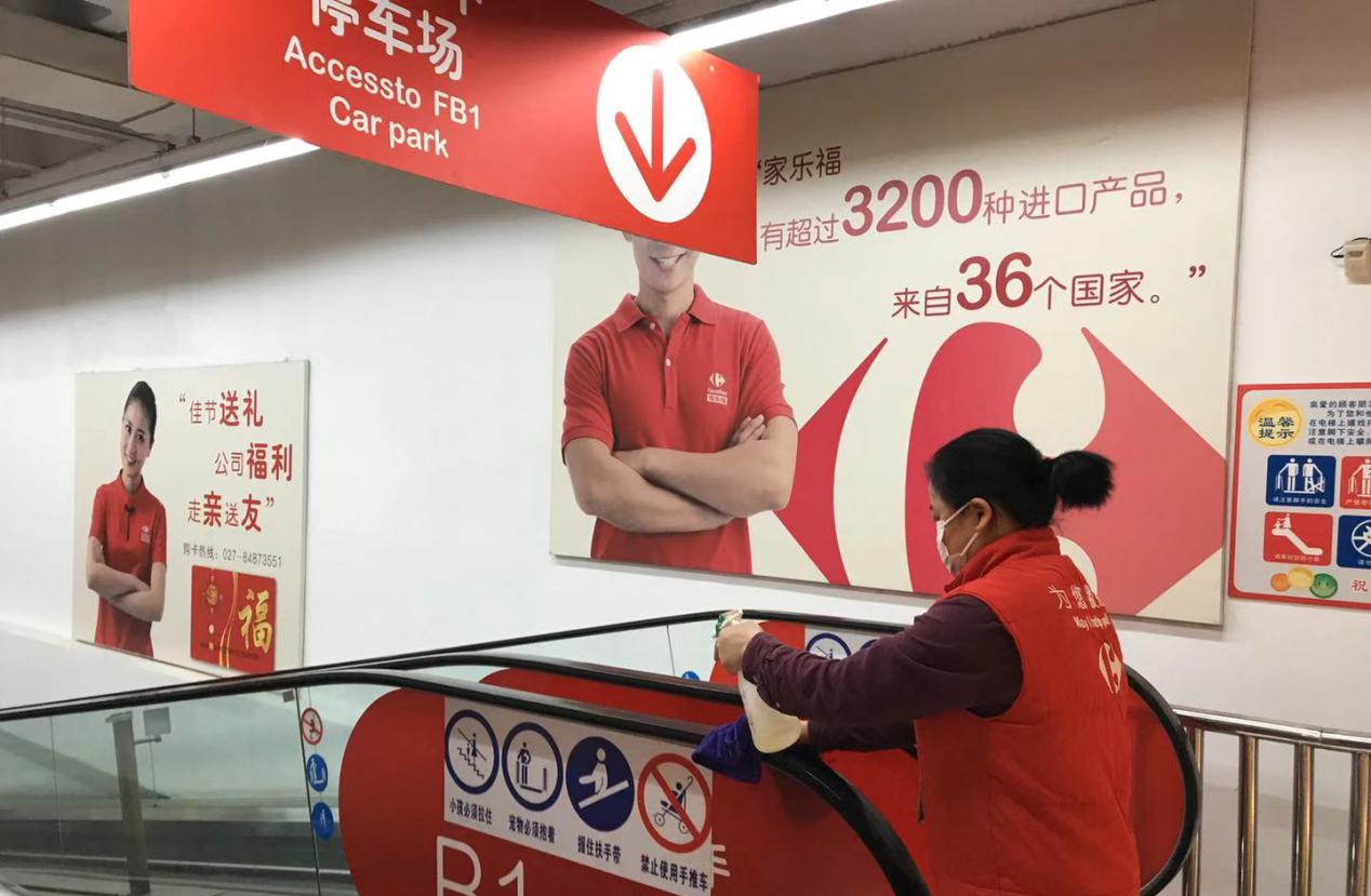 為確保健康、安心的購物環(huán)境,家樂福加強(qiáng)各項安全防范措施,員工每日測體溫戴口罩上崗,地面、自動扶梯把手、購物車、購物籃每2小時消毒一次,廁所每1小時消毒一次。以武漢為例,春節(jié)期間門店清潔消毒已消耗1000瓶消毒液、700瓶洗手液,員工嚴(yán)格遵守口罩更換程序,共消耗近20000個口罩。