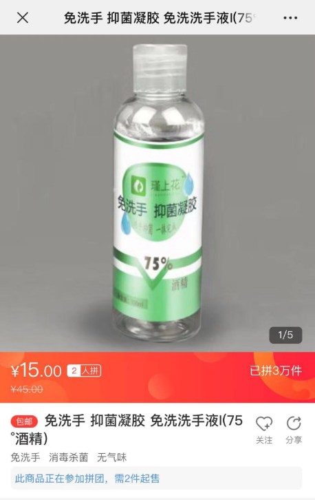 春節(jié)假期進入尾聲后,有少部分工廠陸續(xù)復工。其中有一家來著于蘇寧“拼工廠”的河北企業(yè)與蘇寧拼購通力合作,開足馬力,全力生產(chǎn)酒精含量為75%的免洗手抑菌凝膠。據(jù)蘇寧拼購相關負責人介紹:“蘇寧將根據(jù)最近疫情消費數(shù)據(jù)指導該‘拼工廠’生產(chǎn),預估未來幾天銷量,讓工廠效率達到最大。”據(jù)悉,該款“75%免洗手抑菌凝膠”商品僅2月2日上半日便拼出3萬單。河北“拼工廠”負責人表示,目前產(chǎn)能能達到日均20萬瓶。