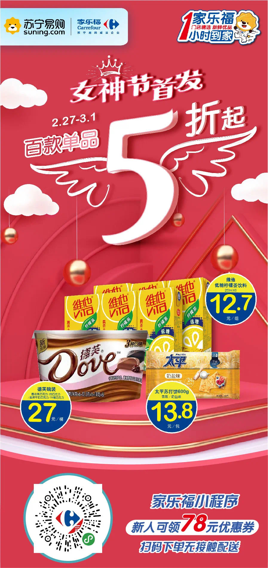 伴隨著春風一并吹來的,還有3月最美的節(jié)日“女神節(jié)”!家樂福提前祝各位女神們節(jié)日快樂!當然,還有大家心心念念的勁爆福利!