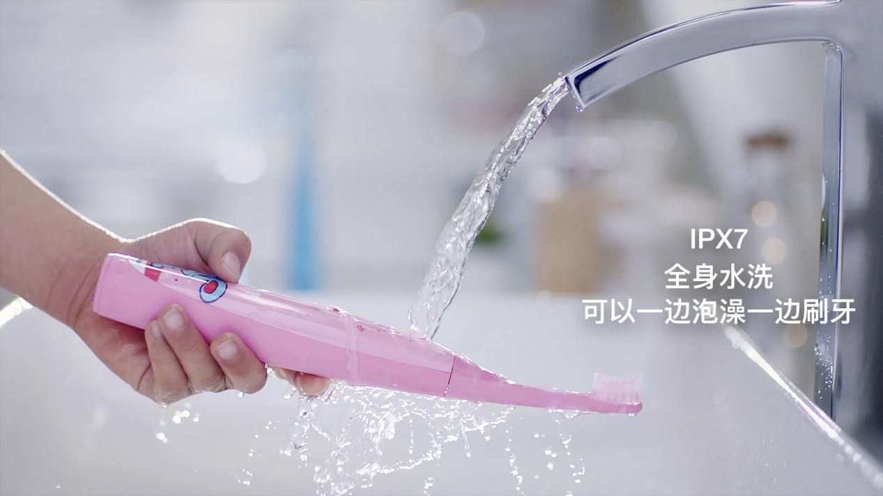 此外,該新品還支持IPX7級(jí)別防水,可全身水洗,讓孩子一邊洗澡也能一邊刷牙。