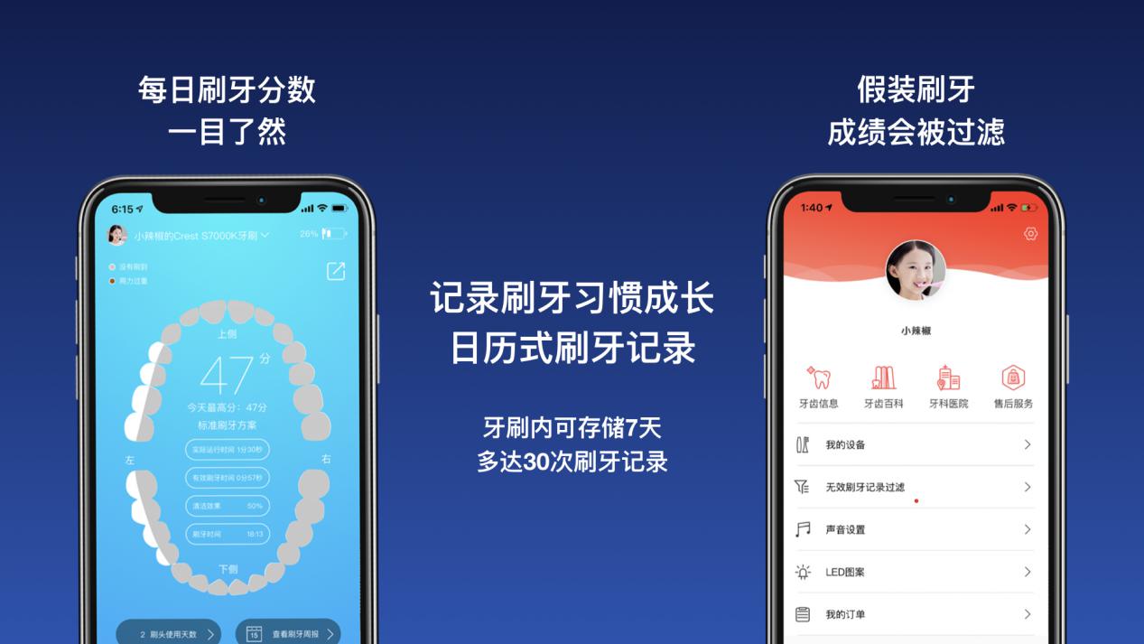 牙刷內(nèi)置的智能芯片可以計(jì)算有效刷牙效果;通過內(nèi)置九軸陀螺儀,每分鐘可檢測1500次刷牙姿態(tài);而內(nèi)置的壓力檢測能夠知道孩子的刷牙力度;軟硬件結(jié)合實(shí)現(xiàn)智能打分,讓孩子和家長直觀看到刷牙效果。