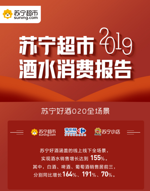 深圳新聞網(wǎng)2020年3月20日訊 昨日,蘇寧超市發(fā)布2019年度酒水消費(fèi)報(bào)告。數(shù)據(jù)顯示,2019年,蘇寧好酒全渠道銷售同比增長(zhǎng)155%。其中,白酒、啤酒、葡萄酒銷售分別同比增長(zhǎng)164%、191%、70%??v觀整年,家樂(lè)福、飛天茅臺(tái)酒、全場(chǎng)景等成2019年蘇寧酒水關(guān)鍵詞,這也進(jìn)一步凸顯了蘇寧超市酒水生態(tài)圈建設(shè)的卓越成效。