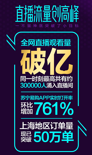 為支持上海五五購物節(jié),蘇寧在20億消費券的基礎上,將為上海消費者推出“超級百億補貼”,還將通過額外發(fā)放“爆品專屬補貼”“分期免息補貼”“以舊換新補貼”等讓利補貼,力促上海消費回暖。直播當晚,共計發(fā)出5億消費券。