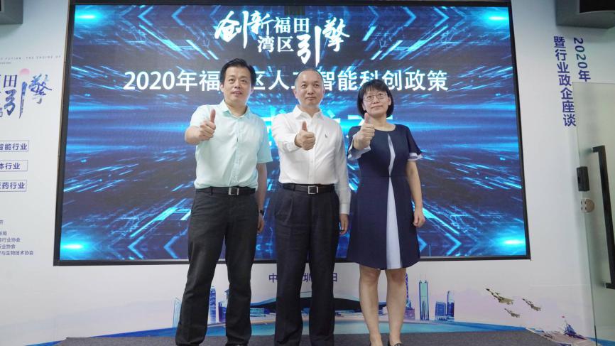 福田區(qū)人民政府歐陽繪宇副區(qū)長、福田區(qū)科技創(chuàng)新局張忠暉局長、人工智能行業(yè)協(xié)會郎麗艷執(zhí)行會長聯(lián)合啟動“創(chuàng)新福田,灣區(qū)引擎”2020年福田區(qū)人工智能科創(chuàng)政策正式發(fā)布儀式。