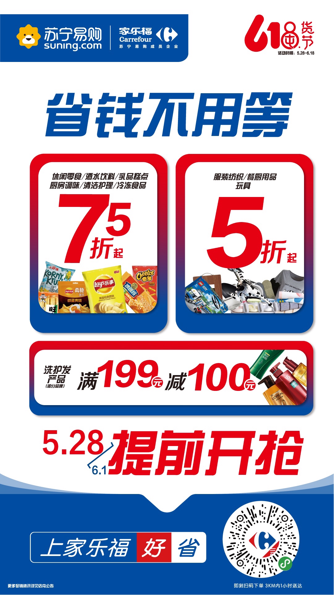作為蘇寧陣營中的排頭兵、蘇寧大快消產(chǎn)業(yè)的核心部分,家樂福率先出戰(zhàn)。為了給消費(fèi)者提供充足時(shí)間選擇心儀的商品,家樂福618囤貨節(jié)即將拉開帷幕,讓消費(fèi)者盡享“618省錢不用等”的升級購物體驗(yàn)。