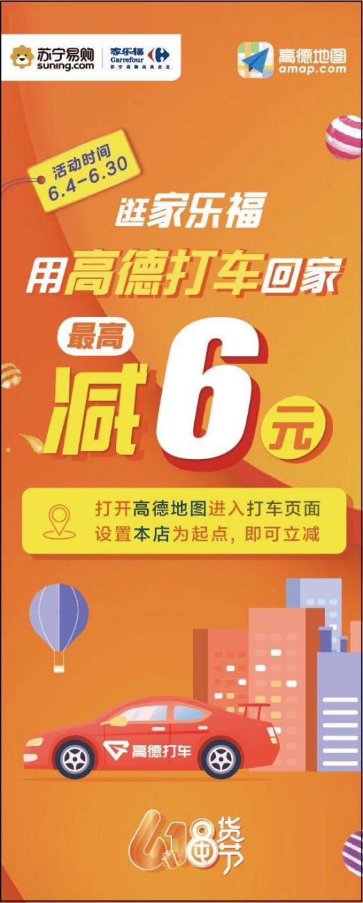 晚上8點40分,下班后趕來購物的王小姐提著滿滿三大袋戰(zhàn)利品準備回家。她拿出手機打開高德地圖APP,選擇“家樂福南方店”為起點,預估車費顯示隨機立減最高6元,同時領(lǐng)取了家樂福138元線上專享新人禮包。
