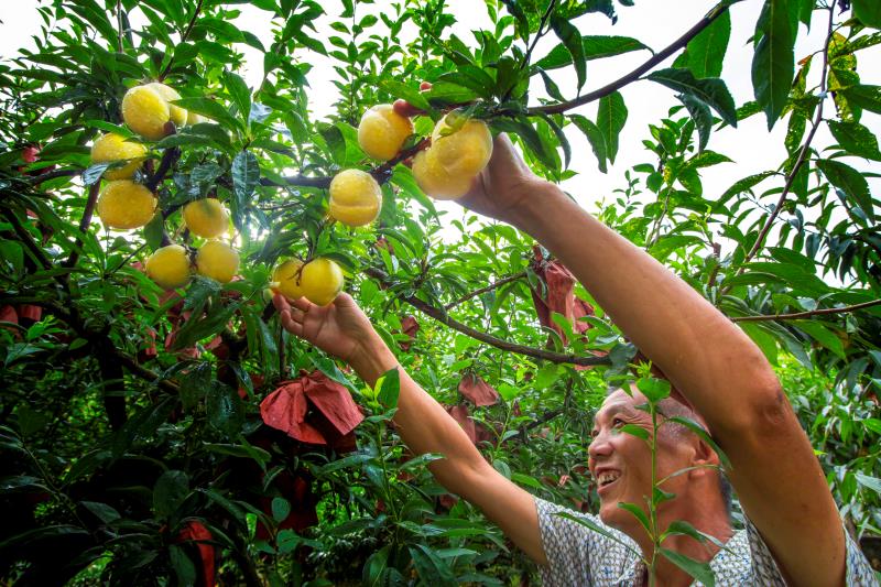 此次活動(dòng)舉辦地平樂(lè)村是炎陵黃桃的主產(chǎn)地之一,黃桃品質(zhì)首屈一指。記者看到,平樂(lè)村家家戶戶房前屋后漫山遍野都是黃桃,村民們正在忙著分揀、套袋、打包。小小的村道上,聚集了郵政、德邦、順豐等各大快遞公司。當(dāng)?shù)攸S桃種植大戶藍(lán)才洪告訴記者,接到訂單后,村民再上山采摘,經(jīng)過(guò)人工分揀,當(dāng)天就可以通過(guò)各個(gè)快遞公司將最新鮮的黃桃發(fā)走。