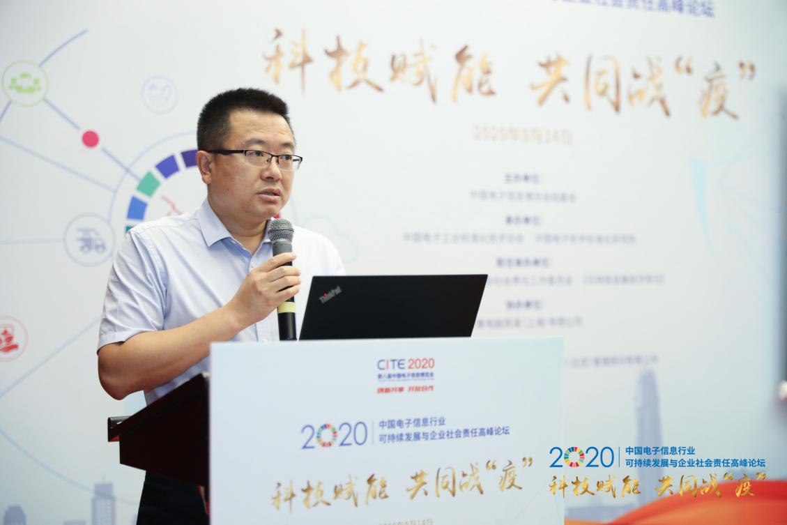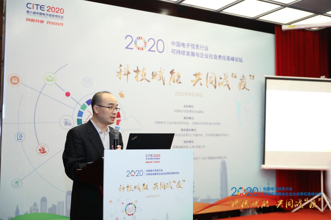 工業(yè)和信息化部產(chǎn)業(yè)政策與法規(guī)司綜合處處長徐華在致辭中表示:面對新型冠狀病毒肺炎疫情的洶涌來襲,電子信息行業(yè)企業(yè)積極承擔社會責任,構筑起了戰(zhàn)“疫”堅固防線,充分發(fā)揮自身專業(yè)優(yōu)勢,運用信息技術能力,為抗擊疫情、復工復產(chǎn)做出了積極貢獻。產(chǎn)業(yè)政策與法規(guī)司作為工業(yè)和信息化部負責推動企業(yè)社會責任建設的主管司局,為深入貫徹落實黨中央國務院關于企業(yè)社會責任工作的要求,進一步加強新時代工業(yè)通訊業(yè)企業(yè)社會責任的建設,2020年,我們積極推進《關于推動工業(yè)通信業(yè)企業(yè)社會責任指導意見》的研究與出臺,探索建立企業(yè)社會責任意識和能力提升機制,推動企業(yè)社會責任培訓和宣傳交流工作。同時,通過搭建企業(yè)社會責任公共服務平臺,為宣傳企業(yè)社會責任政策和為企業(yè)開展社會責任信息披露及溝通交流提供服務。