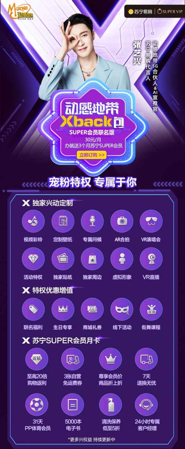 618期間張藝興成為蘇寧易購(gòu)代言人,7月21日中國(guó)移動(dòng)官宣張藝興為動(dòng)感地帶5G合伙人&AI宣推官。SUPER聯(lián)名版動(dòng)感地帶Xback包在818期間推出,讓蘇寧易購(gòu)和中國(guó)移動(dòng)的跨界營(yíng)銷(xiāo)合作浮出水面,外界也更好奇,818之后,蘇寧易購(gòu)和中國(guó)移動(dòng)是否還會(huì)有更大的動(dòng)作。