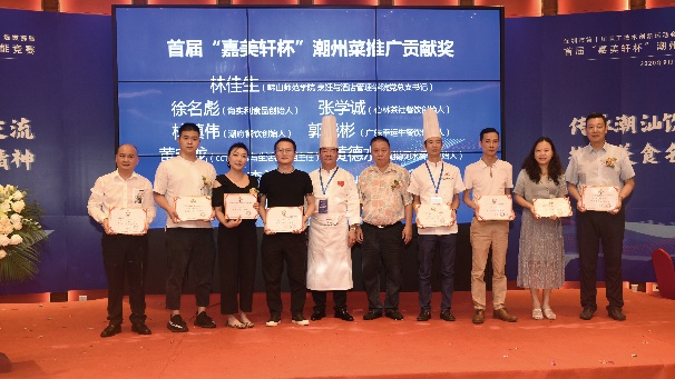 競(jìng)賽現(xiàn)場(chǎng)菜香四溢,氣氛緊張熱烈,參賽選手各顯神通,“煎、炒、炸、燴”樣樣拿手,每一道工序都嫻熟老道,選手在特色食材、傳統(tǒng)與創(chuàng)新烹制方法、精致拼擺等各方面盡顯匠心。深圳市潮州菜名廚專業(yè)委員會(huì)主席、佳兆業(yè)嘉美軒飲食集團(tuán)廚藝學(xué)院院長(zhǎng)邱鎮(zhèn)城及深圳市名廚總會(huì)組成的專家評(píng)委從菜品的質(zhì)感、味感、觀感、營(yíng)養(yǎng)衛(wèi)生、創(chuàng)意實(shí)用等五個(gè)方面對(duì)參賽作品進(jìn)行綜合性評(píng)分?;顒?dòng)設(shè)置了深圳市餐飲行業(yè)卓越總廚、精英總廚、杰出總廚等獎(jiǎng)項(xiàng);對(duì)優(yōu)勝菜品設(shè)置了深圳市最具潮州菜特色風(fēng)味獎(jiǎng)、美食匠心獎(jiǎng)、創(chuàng)新美食獎(jiǎng)等獎(jiǎng)項(xiàng)。中國(guó)烹飪大師劉宗桂、中國(guó)烹飪大師陳瑜明為一批在深圳飲食行業(yè)堅(jiān)持工作、推廣潮汕飲食文化的餐飲單位、個(gè)人頒發(fā)潮州菜推廣貢獻(xiàn)獎(jiǎng),以此鼓勵(lì)參賽選手們傳承匠心精神,攜手推動(dòng)行業(yè)發(fā)展。