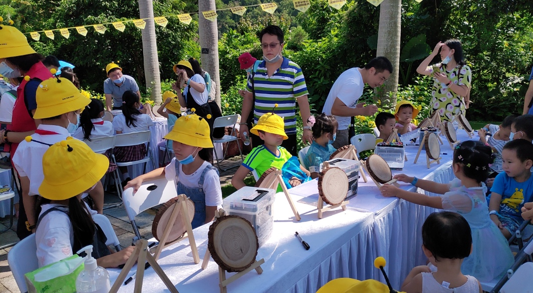 在繪畫活動(dòng)區(qū),家長(zhǎng)和孩子們就像一個(gè)個(gè)蜜蜂家庭,既分工明確,又互相協(xié)作,孩子們充分發(fā)揮自己的想象,在陶瓷罐、圓木片、蜂箱上繪出心目中最美的圖畫!孩子們興高采烈的說(shuō):原來(lái)蜜蜂不僅僅是采花釀蜜,還與人類生活密切相關(guān)!希望爸爸媽媽和我一起畫出來(lái)的圖畫,能吸引到真的蜜蜂來(lái)入??!想深入了解蜜蜂知識(shí)的朋友,可以于9月12日當(dāng)晚,在B站視頻媒體上與西澳蜜蜂專家進(jìn)行國(guó)際連線,共同探討蜜蜂的秘密。