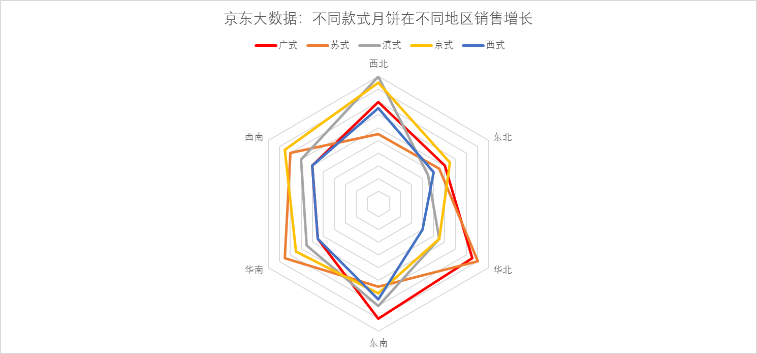 此前有報(bào)告顯示,消費(fèi)者購買月餅渠道更多樣化,已然形成線上為主、線下為輔的趨勢(shì)。而隨著京東渠道的滲透、物流的下沉,很多偏遠(yuǎn)地區(qū)的線上消費(fèi)比例也越來越大,比如西北地區(qū)消費(fèi)者購買廣式和京式月餅的同比增長(zhǎng)分別達(dá)160%和190%,線上銷售的方式打破了區(qū)域間的地理限制,跨區(qū)域嘗鮮成為潮流,而且促進(jìn)了全國各地節(jié)( chi)日( huo)的交流。
