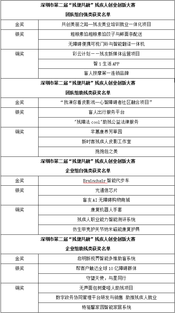 自今年6月啟動以來,大賽受到社會各界的廣泛關(guān)注、積極參與,報名項目達92個,包括團隊組49個,企業(yè)組43個;參賽項目類別涉及科技創(chuàng)新、節(jié)能環(huán)保、社會公益、現(xiàn)代服務(wù)業(yè)等多個行業(yè)領(lǐng)域??梢钥闯?,本次大賽既是對我市殘疾人自主創(chuàng)業(yè),社會力量扶殘助殘促進殘疾人就業(yè)的大檢閱,更是鼓勵殘疾人融入創(chuàng)業(yè)創(chuàng)新的時代潮流,積極助力深圳建設(shè)中國特色社會主義先行示范區(qū)的重要舉措。