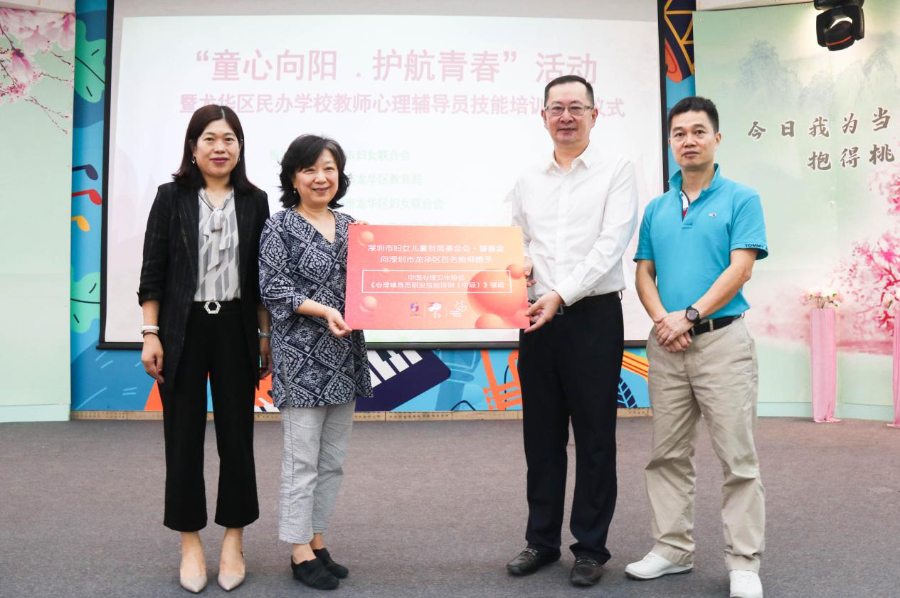 活動現(xiàn)場,深圳市婦女兒童發(fā)展基金會 ·馨基金向龍華區(qū)32所民辦學(xué)校100名教師捐贈了由中國心理衛(wèi)生協(xié)會開展的《心理輔導(dǎo)員職業(yè)技能培訓(xùn)(中級)》課程。深圳市婦女兒童發(fā)展基金會·馨基金發(fā)起人方瑛說,青少年從家庭走入社會、面臨角色轉(zhuǎn)換時極易遭遇心理問題,舉辦本次活動的初衷是希望通過從培訓(xùn)100名老師開始,關(guān)愛影響更多的孩子,也希望能匯聚更多各方資源,惠及更多的青少年。