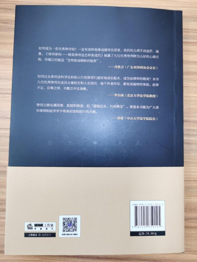 肖勝方會長在“推薦語”中指出:“如何成為一名優(yōu)秀律師呢?一定有某種規(guī)律或路徑在那里,找到的人將不再迷茫、疲憊?!堵蓭熋艽a——精英律師是怎樣練成的》披露了九位優(yōu)秀律師鮮為人知的心路歷程,所揭示的就是‘怎樣煉成鋼鐵的秘密’?!?(吳艷 )