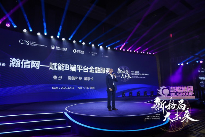 瀚德科技董事長曹彤,發(fā)表題為《瀚信網(wǎng)-賦能B端平臺金融服務(wù)》主題演講。