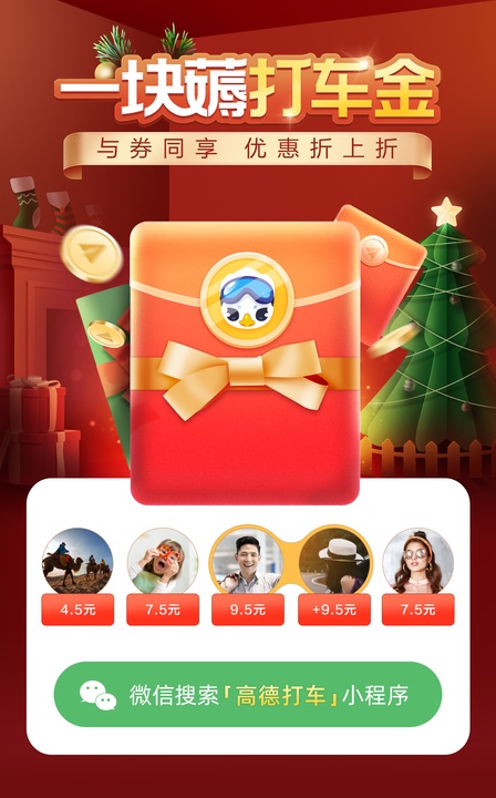 本次“1塊出發(fā)日”,高德打車將在微信小程序推出“一塊薅打車金”活動(dòng)。用戶進(jìn)入高德打車微信小程序,將獲得1個(gè)隨機(jī)金額打車金禮包,用戶將禮包分享給好友,好友點(diǎn)擊即可獲得打車金。禮包內(nèi)所有打車金均被好友領(lǐng)取完畢后,分享人將隨機(jī)獲得與其中一位好友等額的打車金獎(jiǎng)勵(lì)。每個(gè)用戶可多次參與活動(dòng),活動(dòng)期內(nèi)預(yù)計(jì)最高可得500元打車金。