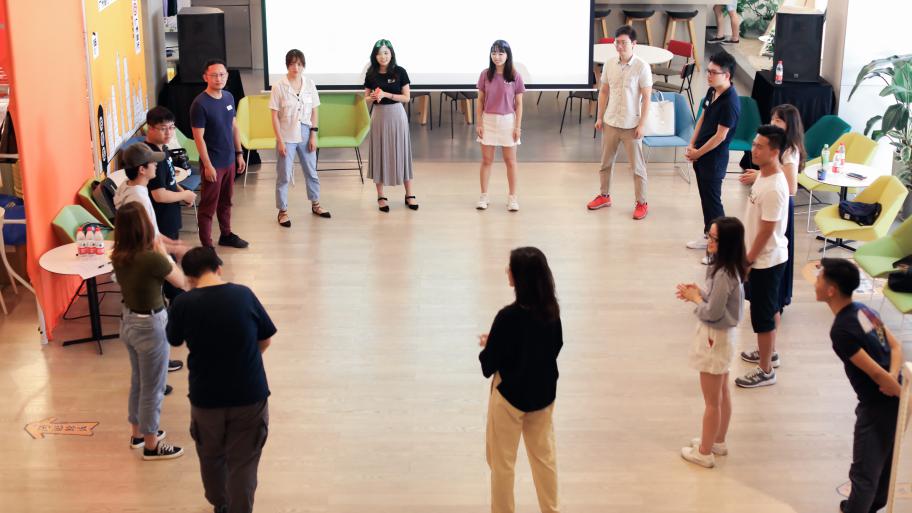 “沸騰演技π”版塊旨在通過(guò)互動(dòng)、體驗(yàn)的方式,讓觀眾從旁觀者的角色,轉(zhuǎn)變?yōu)閼騽〉膮⑴c者,從而觀照自我。空體邀請(qǐng)燃劇廠、串串喜劇、甸甸巴士劇團(tuán)通過(guò)表演體驗(yàn)沙龍、脫口秀現(xiàn)場(chǎng)互動(dòng)、即興戲劇互動(dòng),聯(lián)接觀眾與藝人。戲劇不僅是表演者的場(chǎng)子,在這里,空體都是演技派。