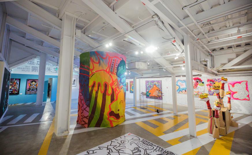 “潮流有戲”特別環(huán)節(jié),是戲劇與潮流藝術(shù)的一次跨界對(duì)話?!俺绷魑褰鸬辍彼囆g(shù)群展以“五金店”為靈感,匯聚九組潮流藝術(shù)家的創(chuàng)作。