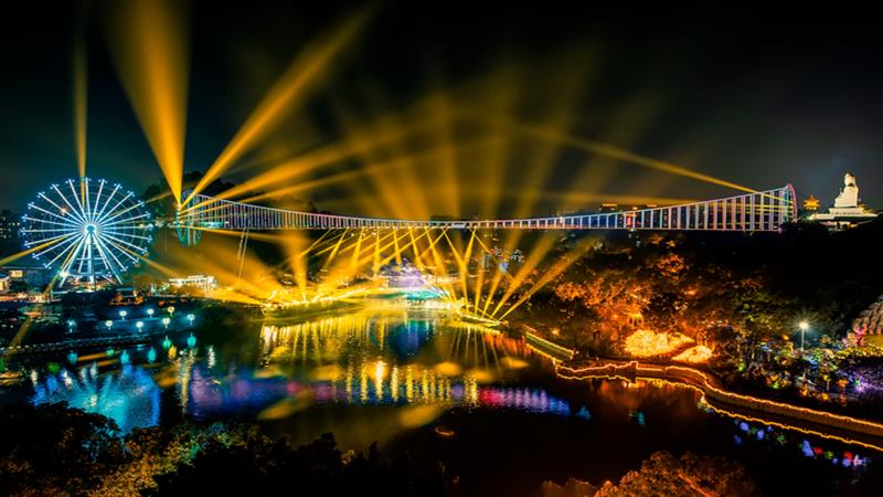 2021年是農(nóng)歷丑牛年,隱賢山莊特別推出了“與牛共舞”和小丑互動節(jié)目,景區(qū)選取了傳統(tǒng)文化里具有勤勞實干品質(zhì)的“牛”為開年使者,讓大家與可愛的萌牛共舞,再配上幽默搞笑的小丑與游客互動,貼合“丑牛”的新年主題?!澳Щ每兹腹取笔且钥兹腹鹊亩嗖熟o謐的環(huán)境為背景,由國內(nèi)知名魔術(shù)師現(xiàn)場表演近景魔術(shù),比熒幕觀賞更有逼真和神秘的效果?!帮L(fēng)情加勒比”將在加勒比民族舞臺上演云南佤族特色舞蹈,讓東莞游客不出遠門就能體驗到異域風(fēng)情。“璀璨之夜”是在隱賢山莊的網(wǎng)紅橋——3D玻璃橋演繹瀑布燈光秀,空中七彩燈光閃耀,與隱賢湖水交相輝映,猶如置身唯美的天上街市?!谤o橋浪漫”是隱賢山莊專門為有情人預(yù)備的一份節(jié)日禮物,在喜鵲的簇擁和音樂的伴奏下,他們從鵲橋的兩端緩緩走向?qū)Ψ?,將中華民族流傳千年的牛女相會的愛情故事由神話變成現(xiàn)實。