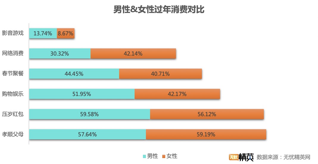 同時為了更好的了解今年的原地過年的消費變化,針對男女消費的差異,我們對調(diào)研者進行了深入了解。在今年春節(jié)的消費投入上,不論男女,上班族春節(jié)的開銷基本都在月薪的150%-200%之間,在開銷習(xí)慣上男女上班族整體比較接近,其中女性孝敬父母的開銷比例達到59.19%,比男性略高。春節(jié)疫情防控期間減少了非必要外出,網(wǎng)購年貨的方式遇上女性偏愛的網(wǎng)購習(xí)慣,打折與網(wǎng)店紅包,年貨、衣服、化妝品、包包等等,買買買簡直停不下手,使得這部分的支出占春節(jié)開銷的首位,并且還比男性高出約12%。同時春節(jié)期間電影票漲價,手機與網(wǎng)絡(luò)游戲更是老套路在春節(jié)期間推出各種氪金活動與商品,比如王者榮耀一款皮膚價格在77塊到177塊之間,春節(jié)期間一口氣推出了近十套皮膚,讓原地過年的宅男宅女們又多了一筆不菲開銷。而男性在游戲上的癡迷度與投入一項都會高于女性,春節(jié)期間影音游戲的支出高出了女性約6%點。