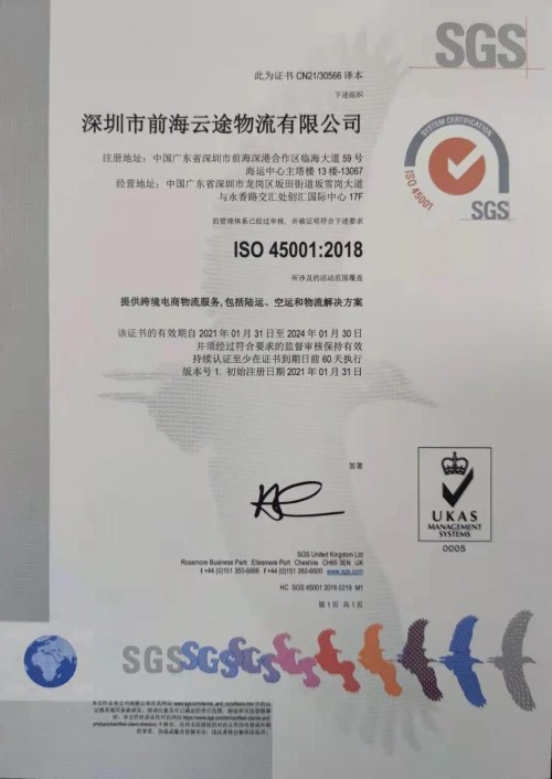 東方網(wǎng)2021年3月11日訊 繼2020年初獲得ISO9001質(zhì)量管理體系認(rèn)證后,近日云途物流順利通過專家組評審,再次獲得由國際公認(rèn)的檢驗(yàn)、鑒定、測試和認(rèn)證機(jī)構(gòu)SGS頒發(fā)的ISO14001環(huán)境管理體系、ISO45001職業(yè)健康與安全管理體系認(rèn)證。