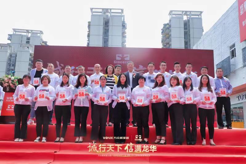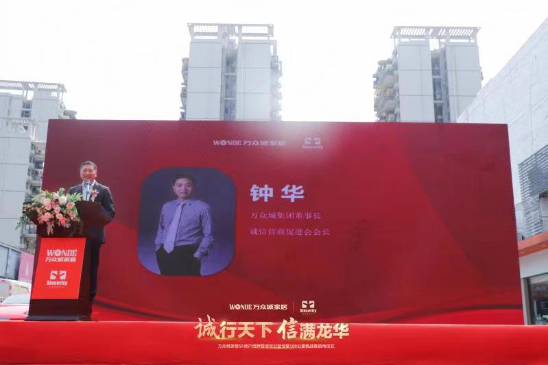 儀式上,誠商會創(chuàng)會會長、萬眾城集團(tuán)董事長鐘華致歡迎辭,他說,萬眾城集團(tuán)自2009年開始做誠信建設(shè),創(chuàng)立了“誠信基金”“誠信沙龍”“5A級誠信商戶評選”三板斧,將商戶有效投訴從十二年前的91起,商戶自覺誠信經(jīng)營,往后每年未超過5起。萬眾城既是誠信建設(shè)者,也是受益者,投訴率和理賠率逐年下降,商家營業(yè)額逐年上升。經(jīng)過嚴(yán)格的篩選和評審,萬眾城家居評出了2020年度5A商戶共346戶,并在當(dāng)天的儀式上給20名5A商戶代表授牌。
